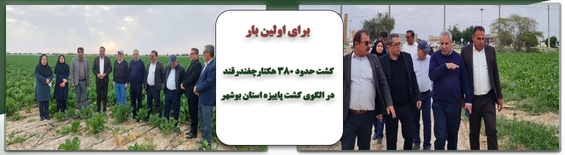 ۱۸ خرداد ۱۴۰۴ | ۱۰:۵۰ ۳ کشت ۳۰۰ هکتار چغندر در الگوی کشت پاییزه انتخاب دکتر طالقانی به عنوان رییس کمسیون تخصصس گروه علوم زراعی و باغی بذر های موسسه تحقیقات اصلاح و تهیه بذر چغندرقند همرسانی : لینکدین تلگرام واتساپ توییتر